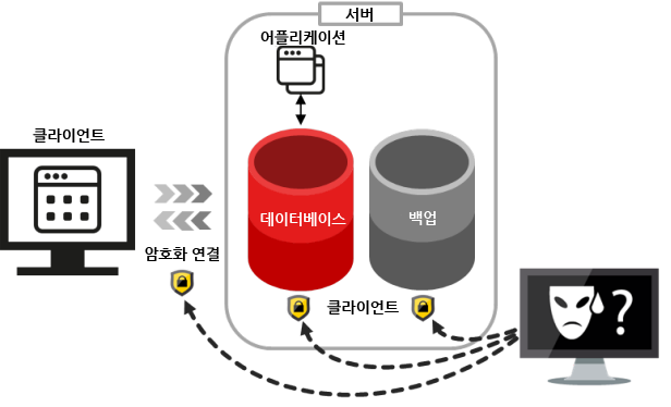 - 투명한 데이터 암호화 (TDE: Transparent Data Encryption)