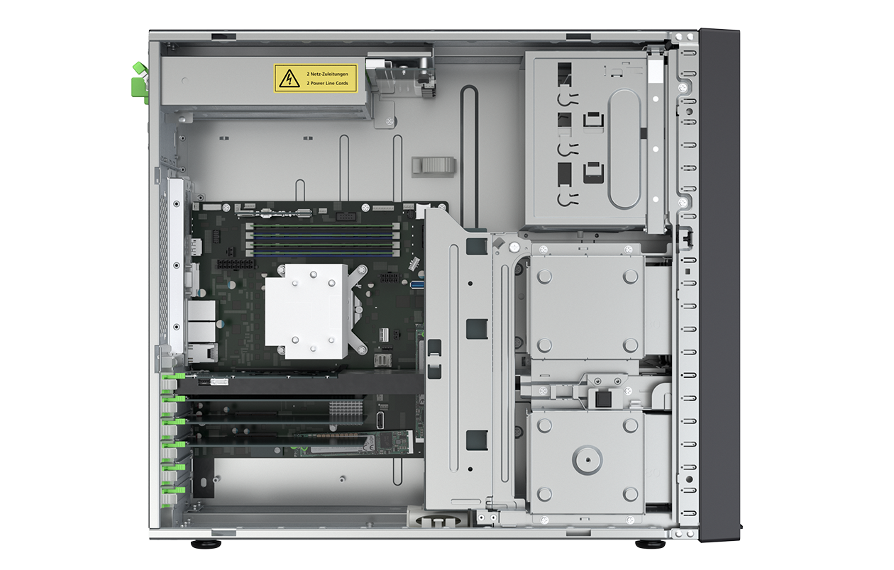 即使在大量使用的情境下,新的高效冗餘電源仍提供更高的可靠性和更低的能耗。Fujitsu Cool-safe ® 先進散熱技術支援廣泛的操作範圍和降低噪音,適合部署於公共空間。